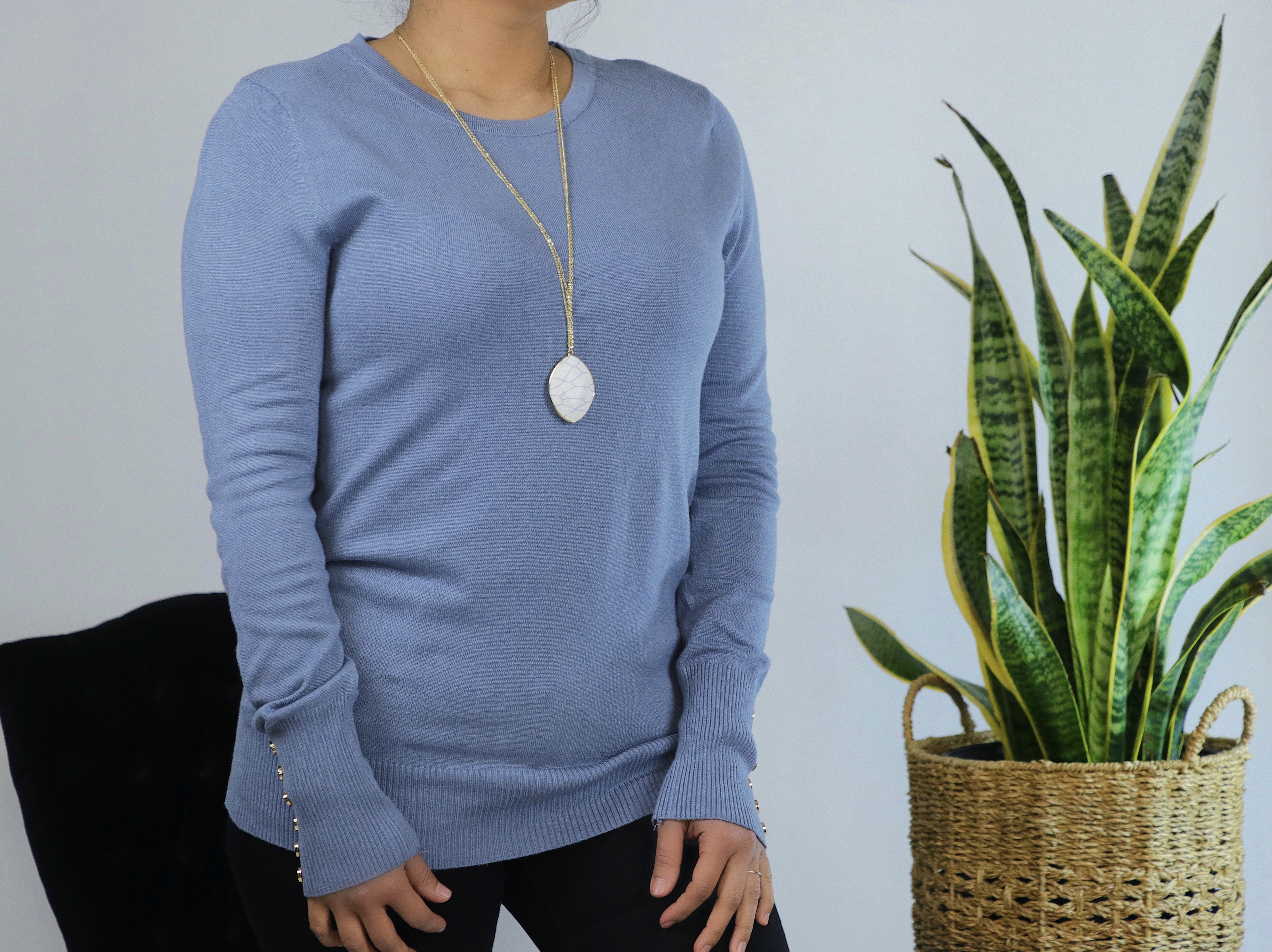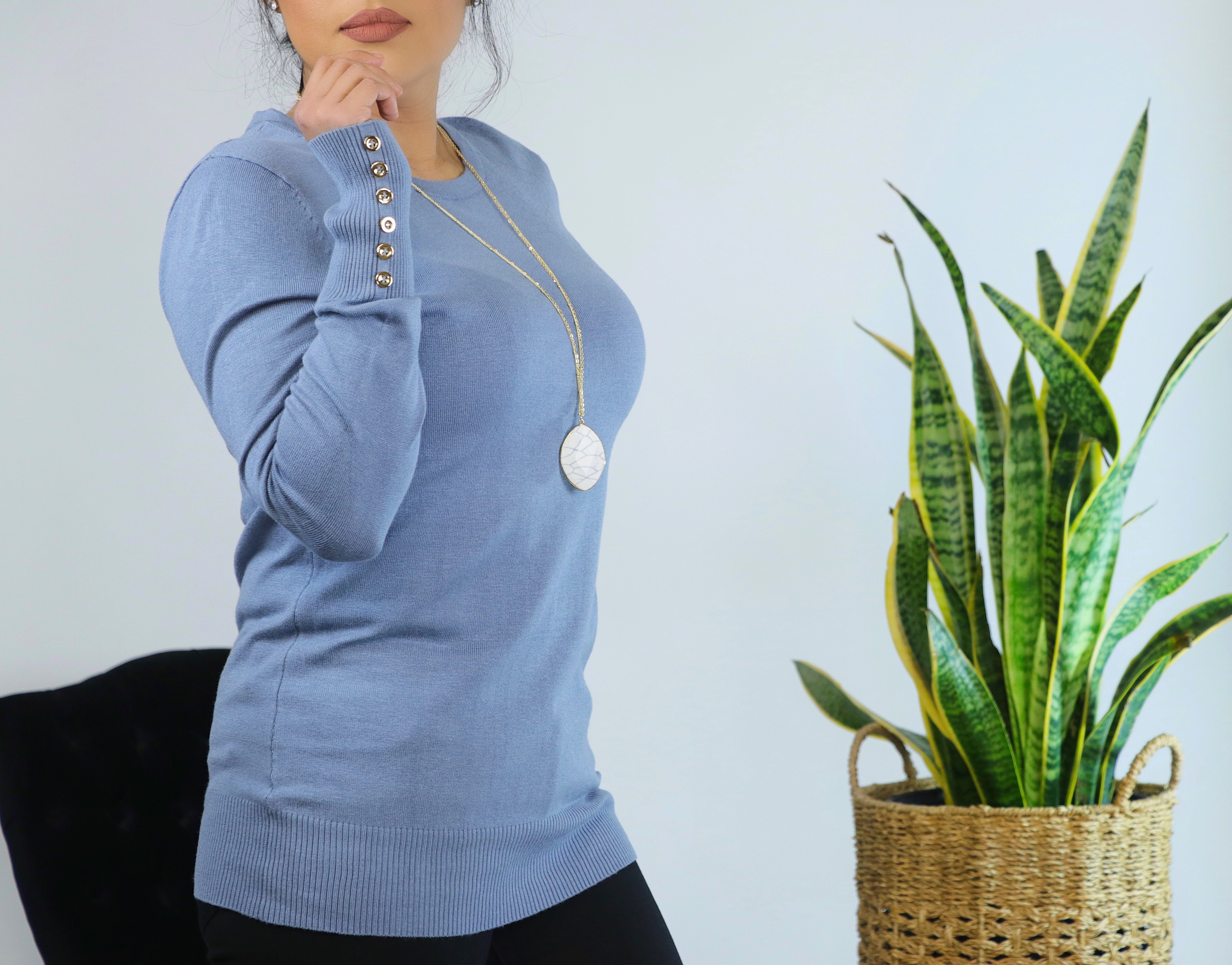 - BUTTON SLEEVE SWEATER