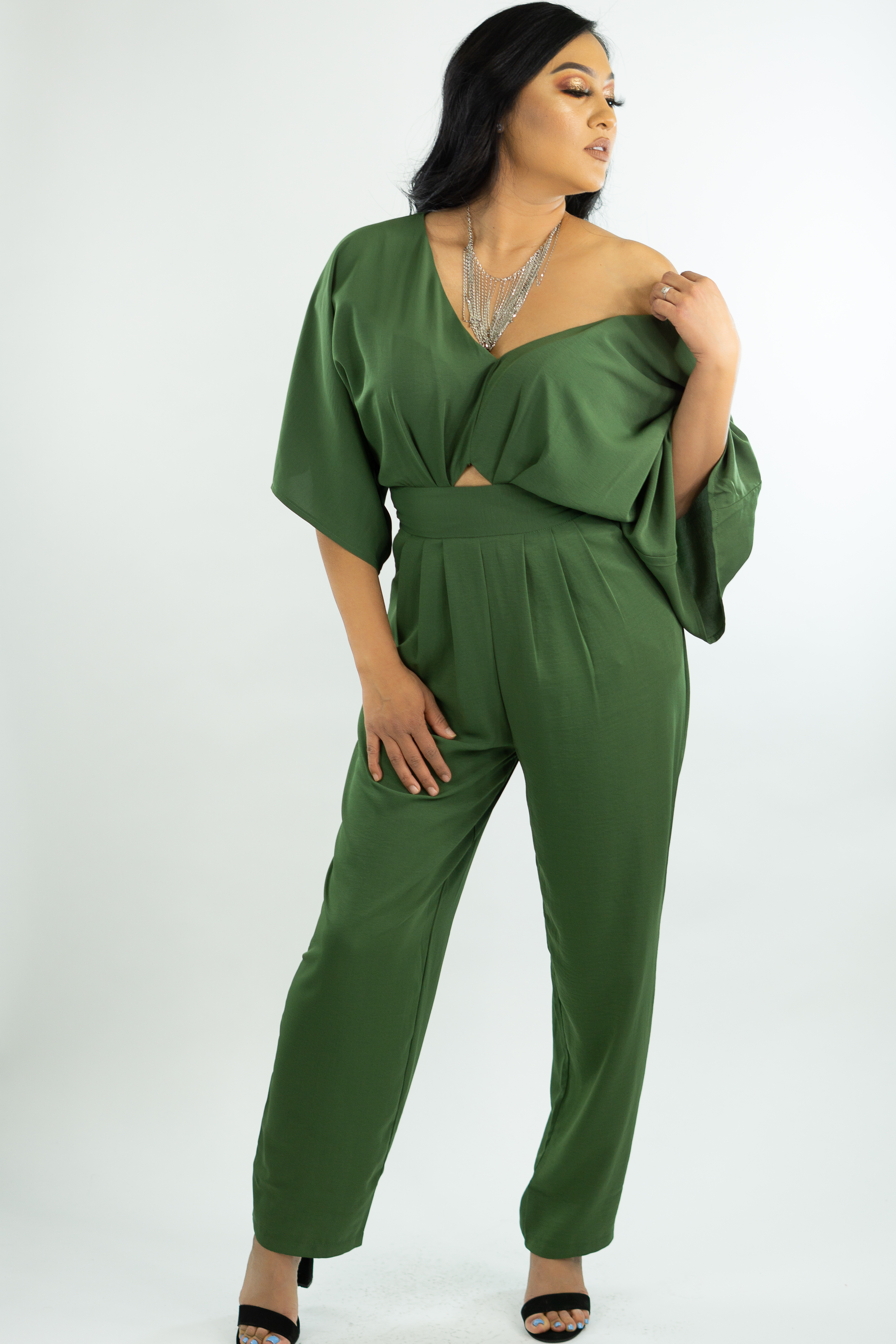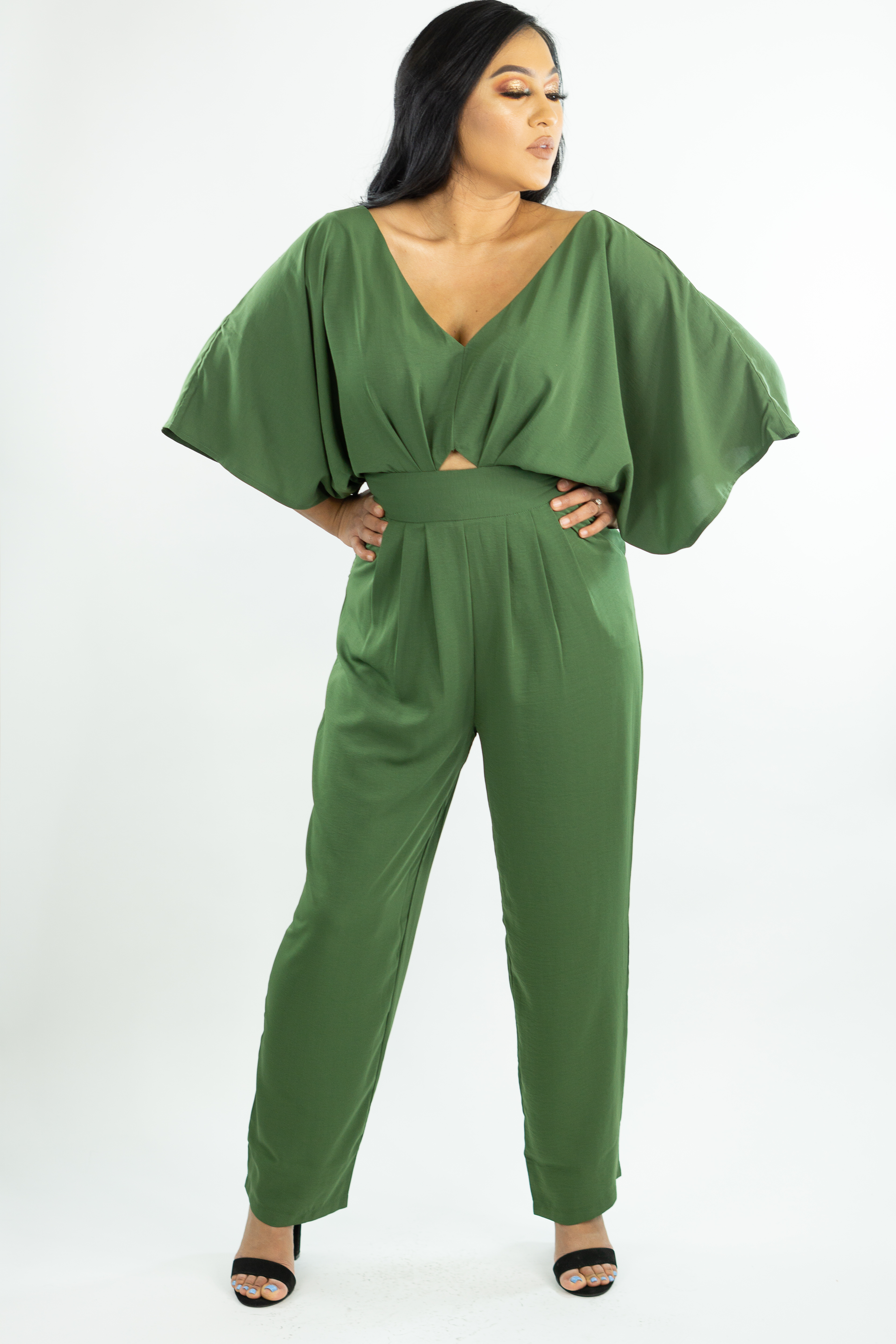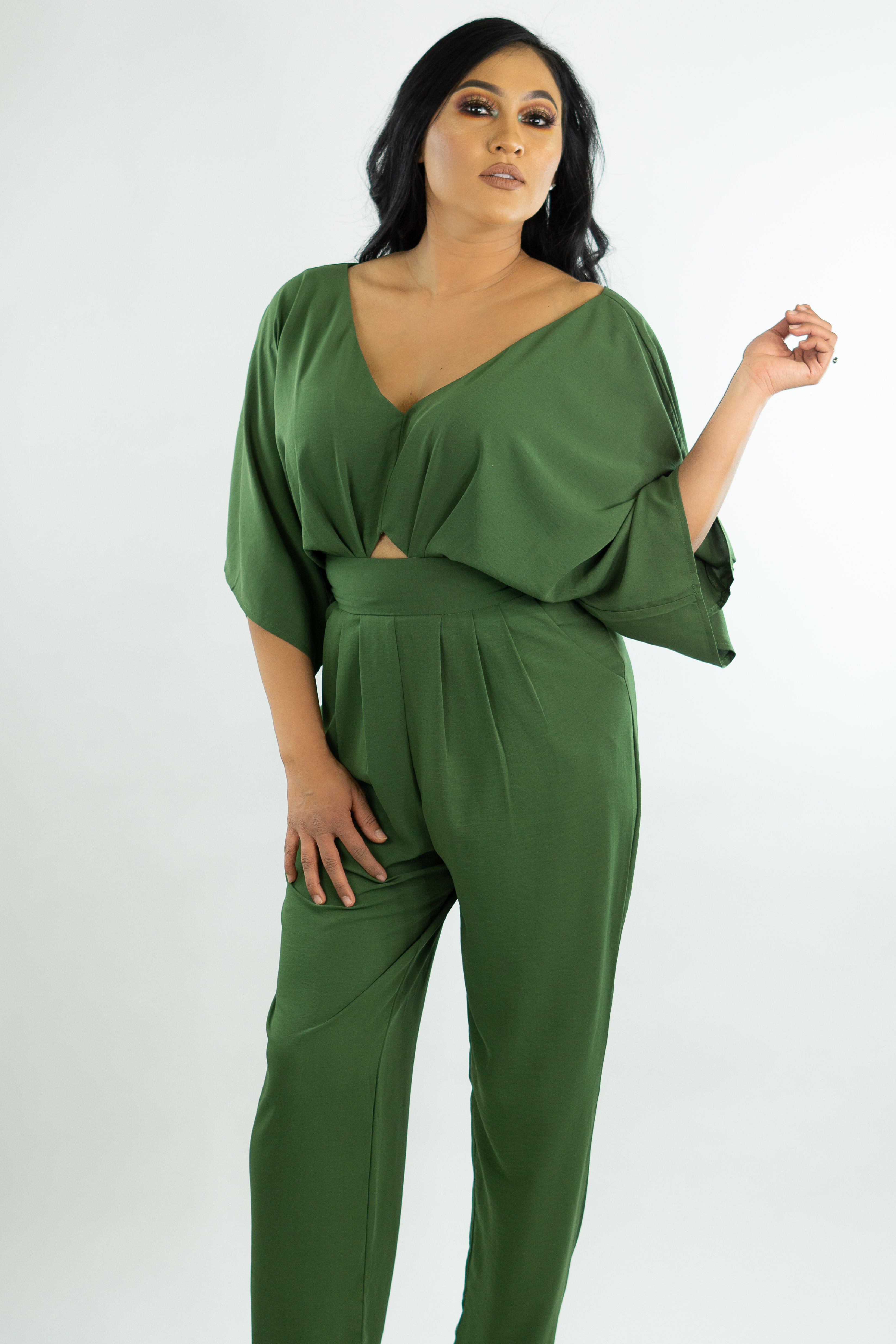 V-NECK DOLMAN JUMPSUIT STRAIGHT LEG, WIDE SLEEVES ZIPPER IN THE BACK